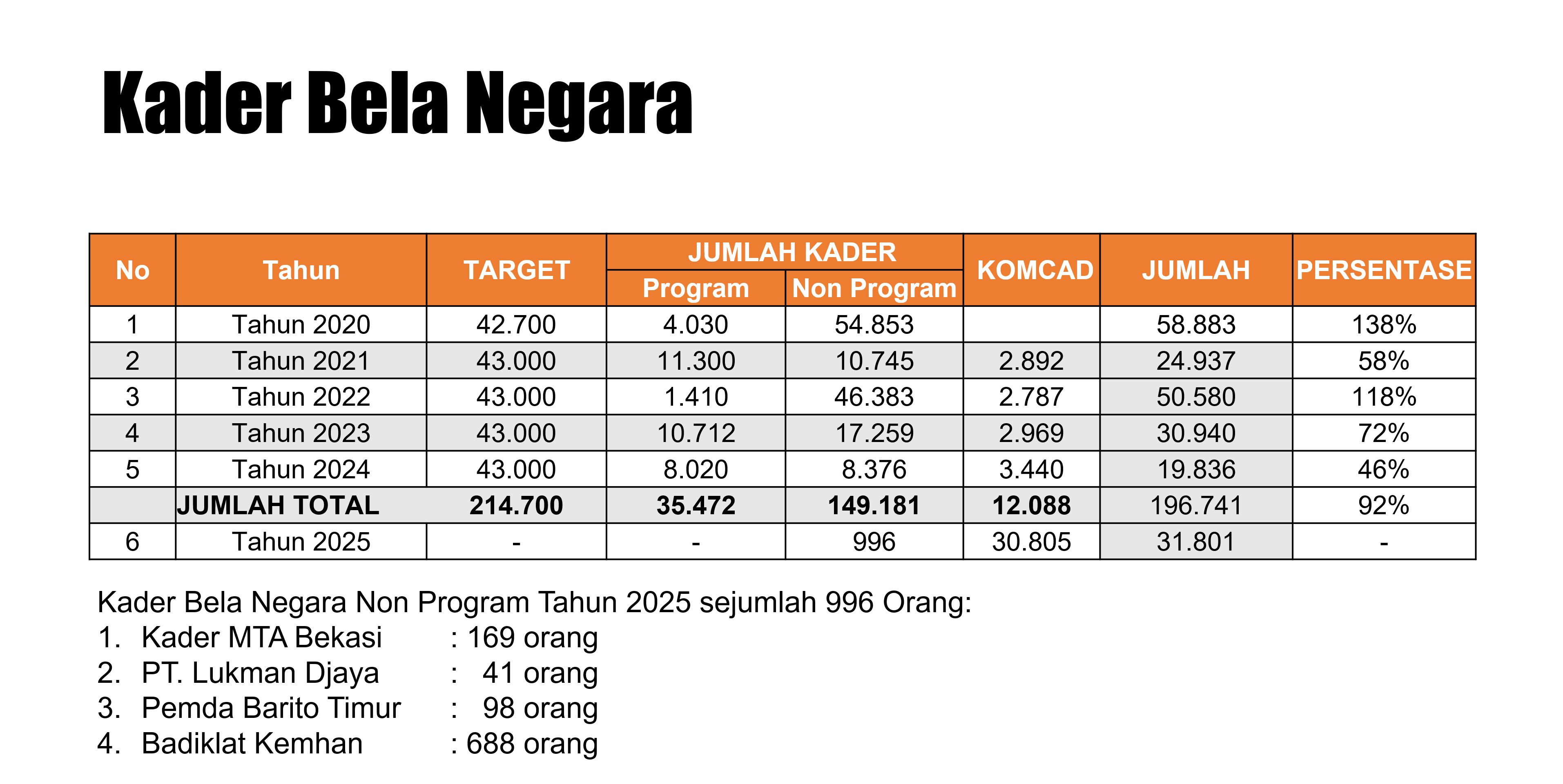 REKAPITULASI KADER BELA NEGARA TAHUN 2025