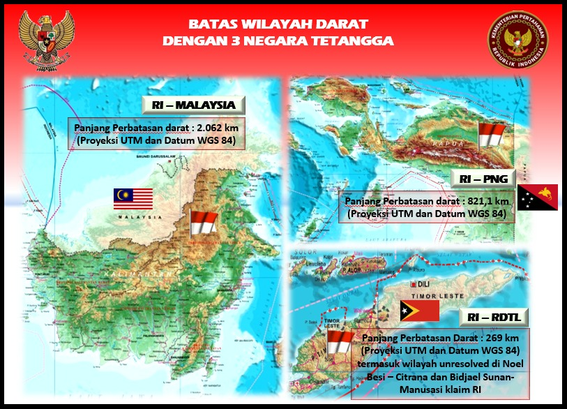Keterangan : Batas wilayah darat dengan 3 Negara tetangga